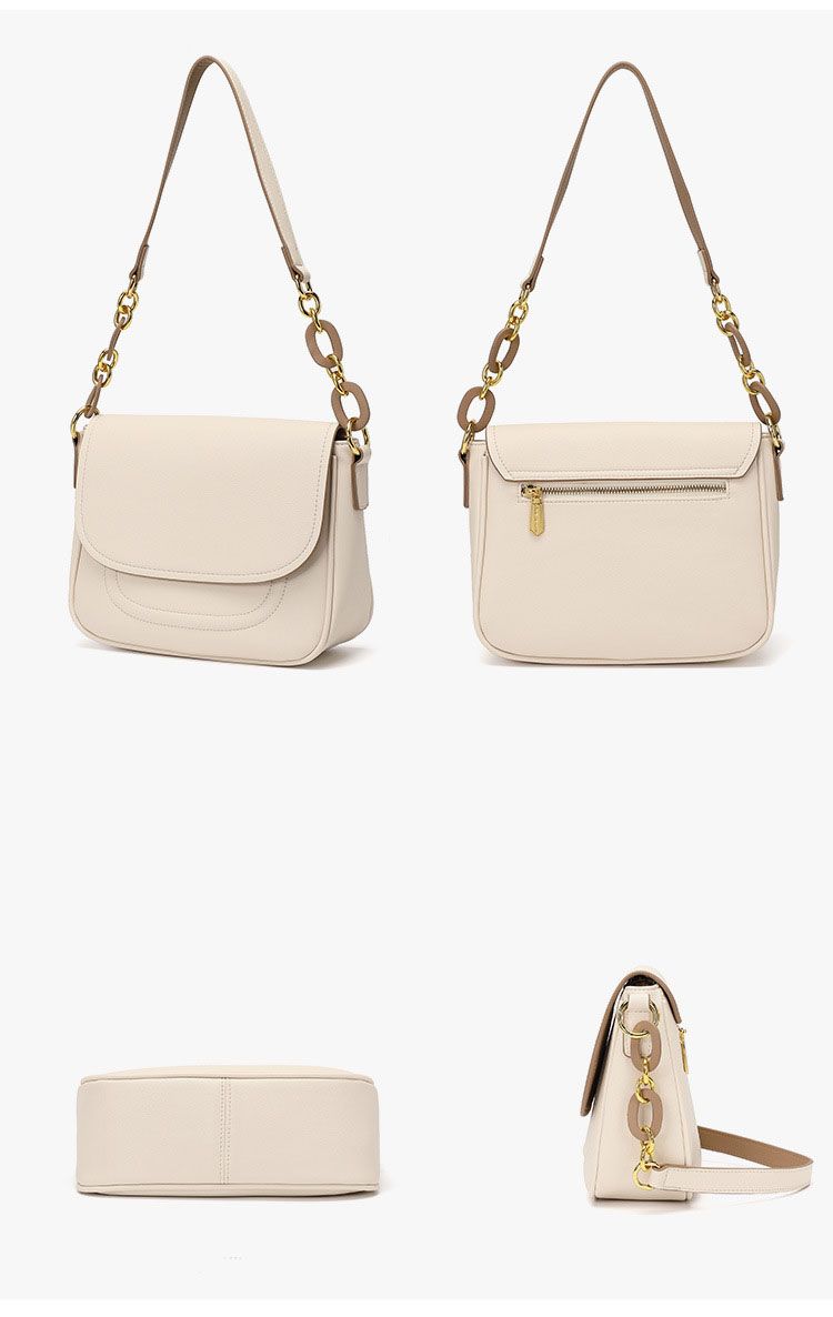 このバッグは本物のレザーで作られており、肩掛け用と腕掛け用の2つのストラップが付いています。